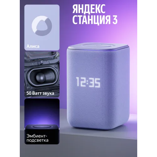 Умная колонка Yandex Станция 3 Алиса фиолетовый 50W 2.1 BT/Wi-Fi (YNDX-00060PPL)