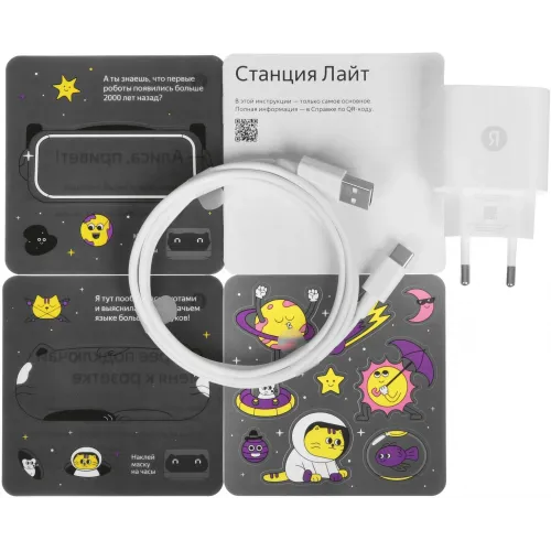 Комплектация | Яндекс Станция Лайт 2, адаптер питания, инструкция |