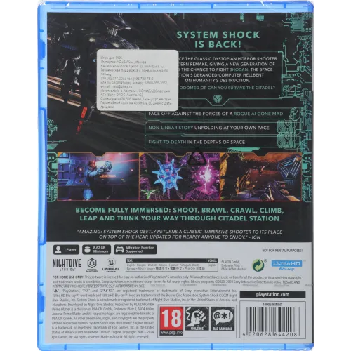 | Описание игры | Безумный ИИ захватил контроль над станцией, превратил ее команду в армию киборгов-мутантов и теперь угрожает всему человечеству. Геймерам предстоит исследовать станцию, бороться с врагами, решать головоломки и противостоять планам SHODAN, чтобы спасти себя и всю Землю от уничтожения |