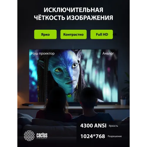 Проектор Cactus Bright CS-V2.B 3LCD 4400Lm ANSI (1024x768) 30000:1 ресурс лампы:10000часов 1xUSB typeA 1xUSB typeB 2xHDMI 4кг