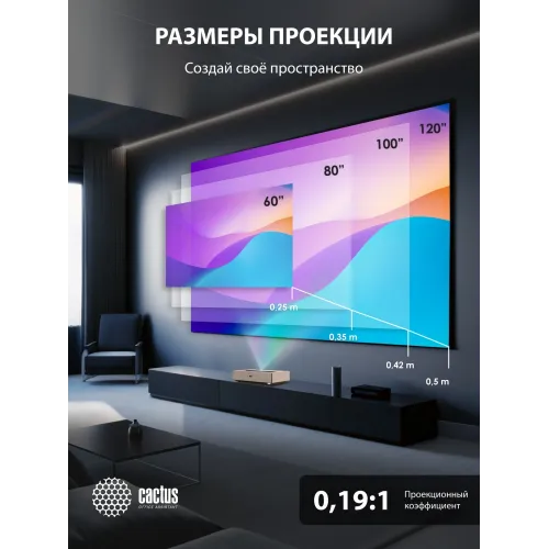 Проектор Cactus CS-U2.WT DLP 800Lm ANSI (1920x1080) 15000:1 ресурс лампы:50000часов 2xUSB typeA 2xHDMI 1.78кг