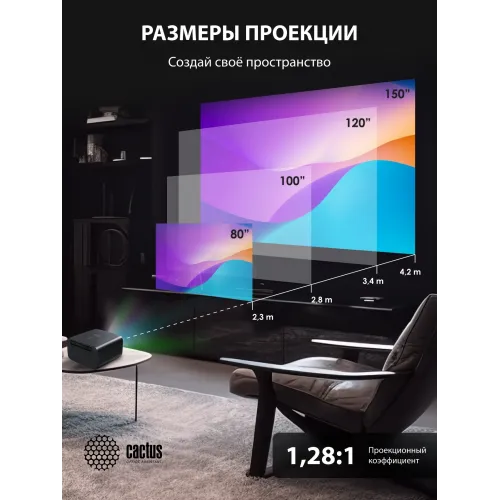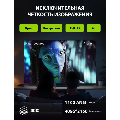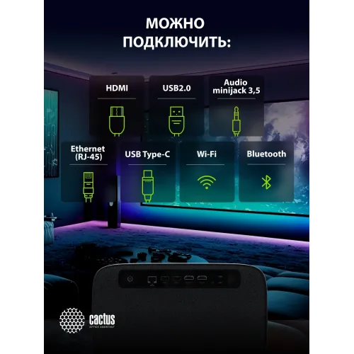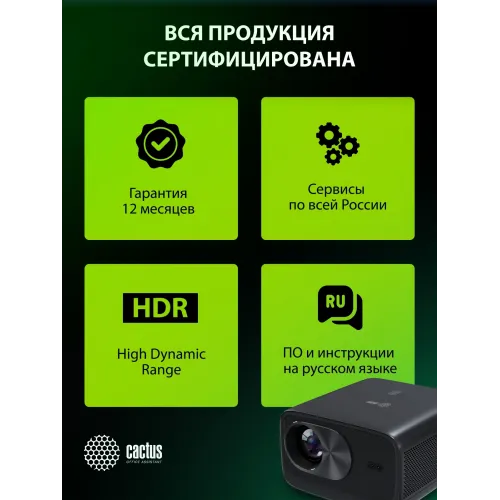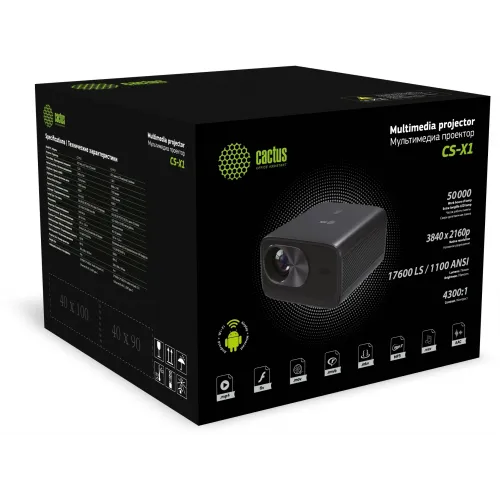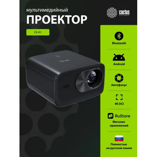 Проектор Cactus CS-X1.B LCD 1100Lm ANSI (4096x2160) 4300:1 ресурс лампы:50000часов 2xUSB typeA 2xHDMI 3кг