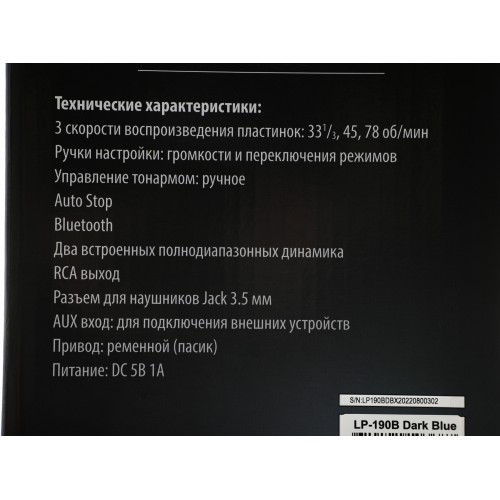 Проигрыватель винила Ritmix LP-190B полностью автоматический темно-синий