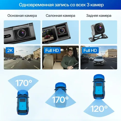 Видеорегистратор TrendVision Phantom 3CH GPS черный 1440x2560 1440p 170гр. GPS SA230D