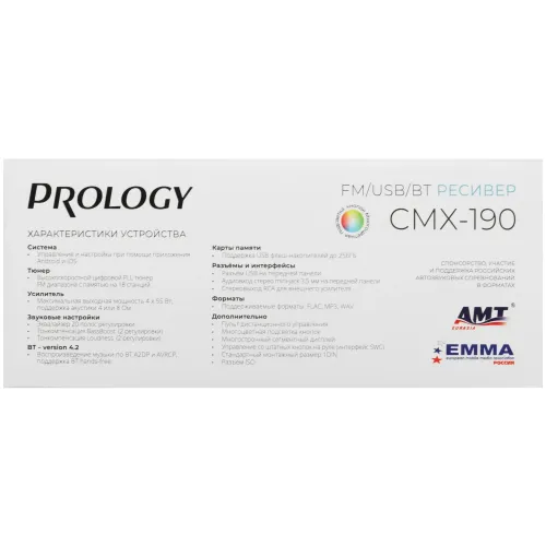 Автомагнитола Prology CMX-190 1DIN 4x55Вт v4.2 AUX 1 ПДУ (PRCMX190)