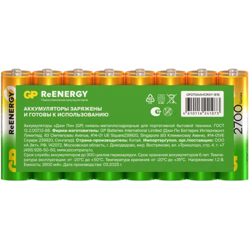 Аккумулятор GP 270AAHCRGY AA NiMH 2700mAh (16шт) спайка