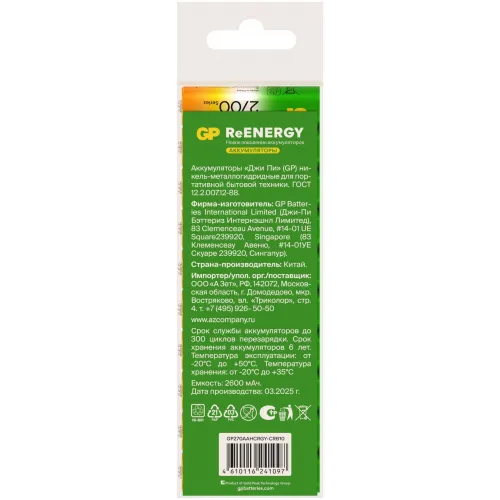 Аккумулятор GP 270AAHCRGY-CRB10 AA NiMH 2700mAh (10шт) спайка