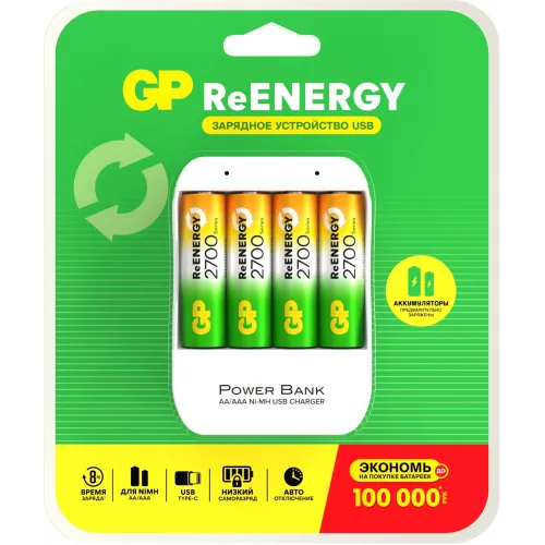 Аккумулятор + зарядное устройство GP 270AAHC/CPB-2CR4 AA NiMH 2700mAh (4шт) блистер