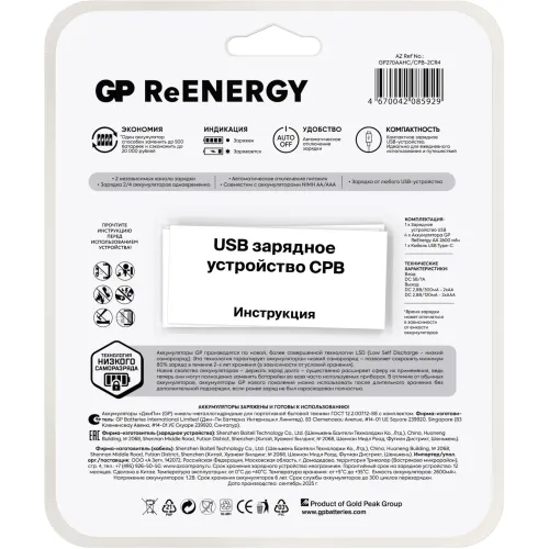 | Тип | Аккумуляторная батарейка + Зарядное устройство |