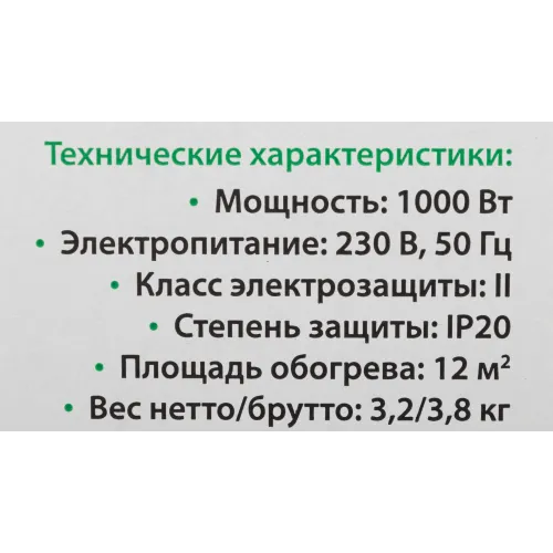 | Класс защищенности обогревателя | IP20 |