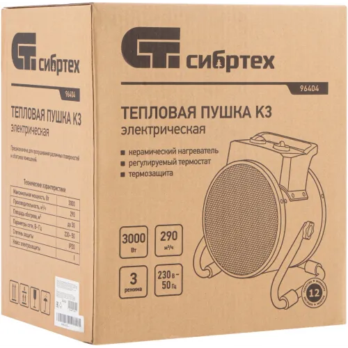 Тепловая пушка электрическая Сибртех K3 3000Вт синий/черный