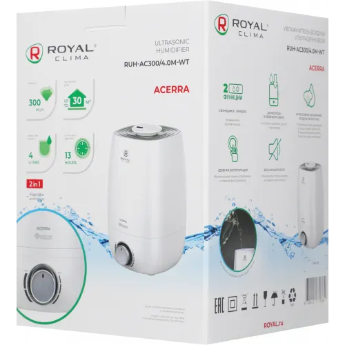 Увлажнитель воздуха Royal Clima RUH-AC300/4.0M-WT 25Вт (ультразвуковой) белый/серый