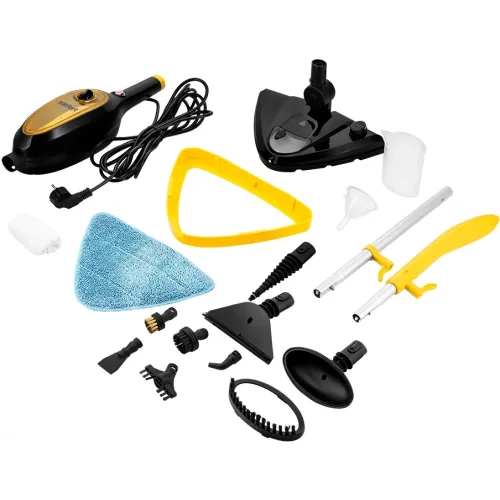| Комплектация | насадка для отпаривания, тряпка для отпаривания и ворсовая насадка для отпаривания, насадка со скребком, круглая нейлоновая щетка, латунная щетка, плоская нейлоновая щетка, рамка для ковра |