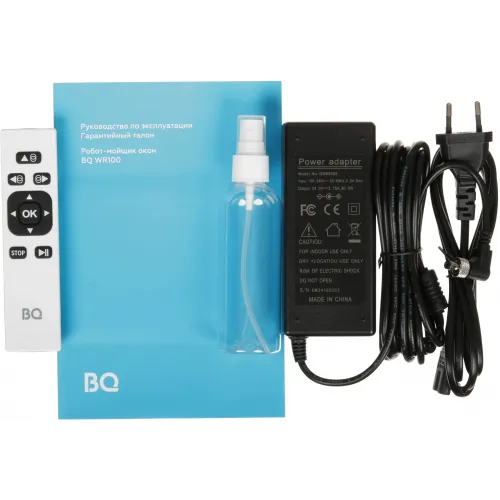 | Комплектация | Робот - мойщик окон - 1 шт, Зарядное устройство - 1 шт, Пульт дистанционного управления- 1 шт, Чехол для хранения - 1 шт, Съемные кольца для тряпки - 4 шт, Чистящие салфетки - 20 шт, Флакон для чистящего средства - 1 шт, Страховочный трос - 1 шт, Руководство по эксплуатации и гарантийный талон - 1 ш |