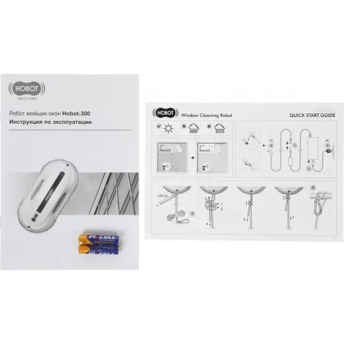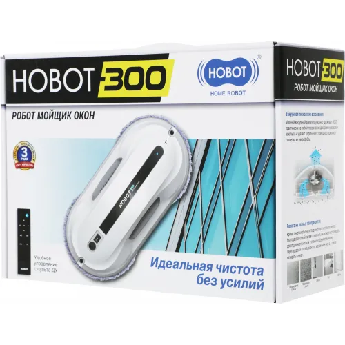 | Комплектация | робот HOBOT-300, страховочный шнур, пульт ДУ, адаптер питания, шнур питания переменного тока, удлинитель постоянного тока, чистящие салфетки из микрофибры (6 шт. + 2 шт. на роботе), кольцо для салфеток (2 шт. + 2 шт. на роботе), руководство пользователя, гарантийный талон |