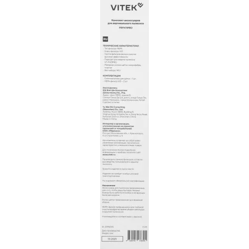 | Назначение | для моющего пылесоса VT-FW11PRO |