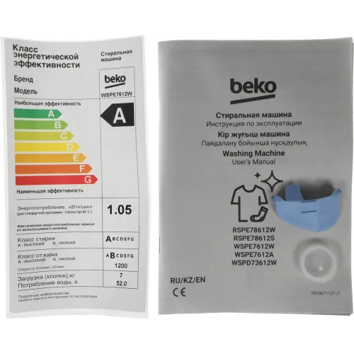 Стиральная машина Beko WSPE7612W класс: A загр.фронтальная макс.:7кг белый инвертор