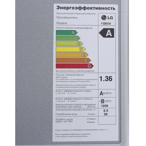 Стиральная машина LG F1296TD4 класс: A загр.фронтальная макс.:8кг серебристый инвертор