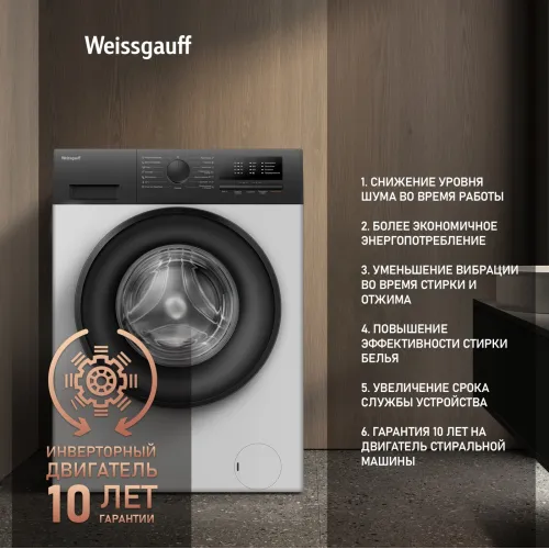 Стиральная машина Weissgauff WM 40106 Inverter Steam класс: A+++ загр.фронтальная макс.:6кг белый инвертор