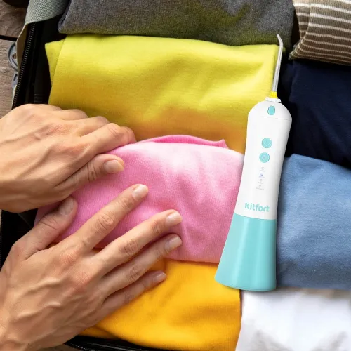 Ирригатор Kitfort КТ-2958-3 портатив. 4насад. бирюзовый/белый