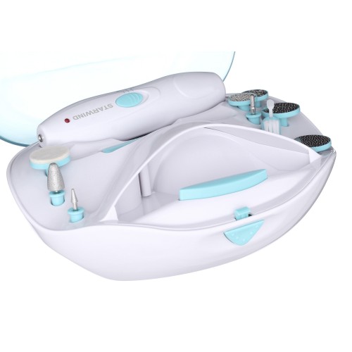 | Насадки | 4 насадки для педикюра, фреза для полировки ногтей, большая конусная насадка, 2 пилки, палочка для удаления кутикулы, насадка для удаления кутикулы |