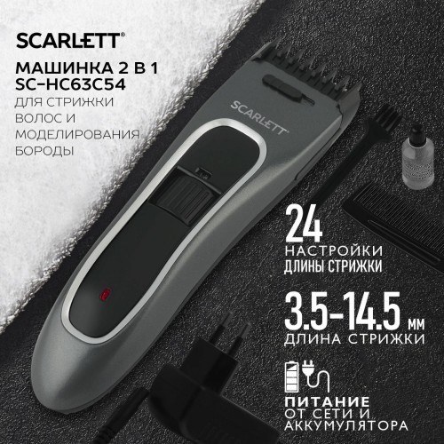 Машинка для стрижки Scarlett SC-HC63C54 графитовый/черный 6Вт (насадок в компл:1шт)