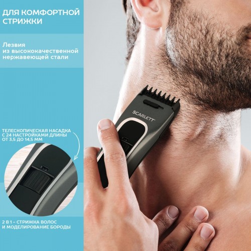 | Особенности | 24 настройки длины стрижки от 3,5 до 14,5 мм |