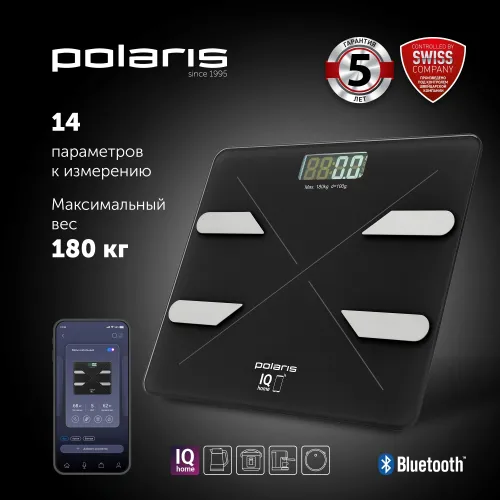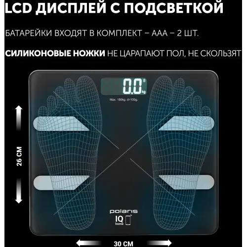 Весы напольные электронные Polaris PWS 1898 IQ Home макс.180кг черный