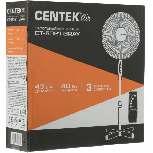 Вентилятор напольный Centek CT-5021 40Вт скоростей:3 ПДУ серый/белый