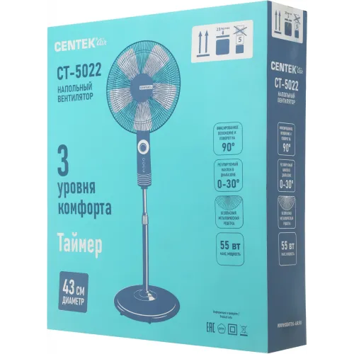 Вентилятор напольный Centek CT-5022 55Вт скоростей:3 черный