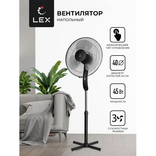 Вентилятор напольный Lex LXFC 8313 45Вт скоростей:3 черный
