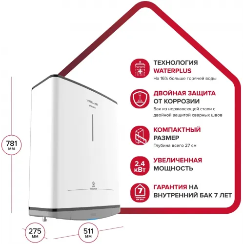 | Защита и безопасность | магниевый анод увеличенного размера, предохранительный клапан |