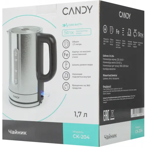 Чайник электрический Candy CK-204 1.7л. 2200Вт графит корпус: нерж.сталь