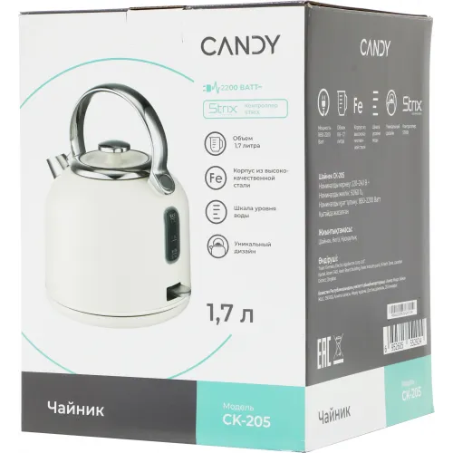 Чайник электрический Candy CK-205 1.7л. 2200Вт слоновая кость корпус: нерж.сталь
