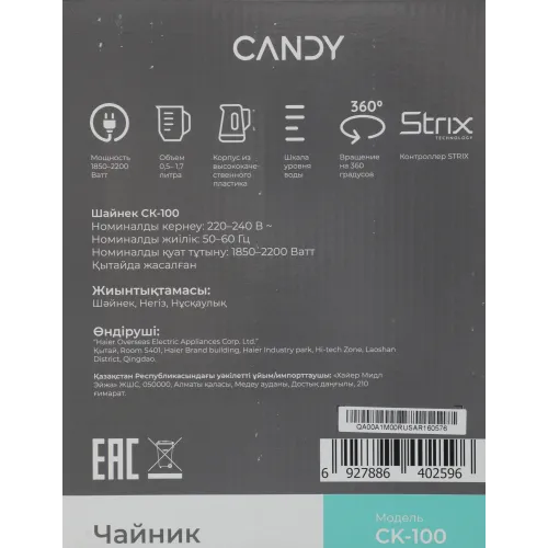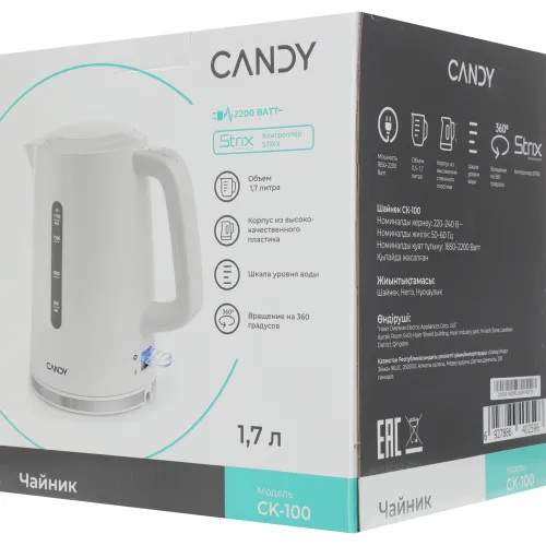Чайник электрический Candy QA00A1M00RU 1.7л. 2200Вт белый корпус: пластик (CK-100)