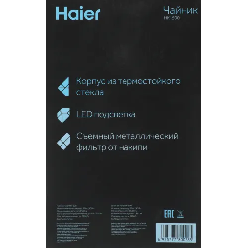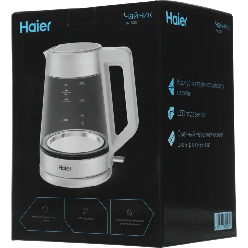 Чайник электрический Haier HK-500 1.7л. 2200Вт серый/белый корпус: стекло/пластик (TD0029955RU)