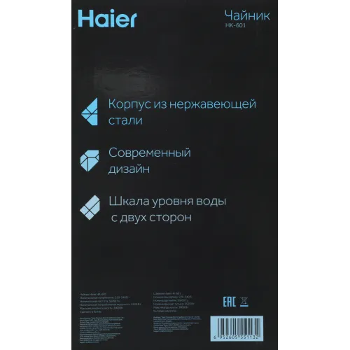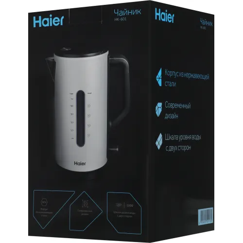 Чайник электрический Haier HK-601 1.7л. 3000Вт серебристый корпус: нерж.сталь (QA0082M00RU)