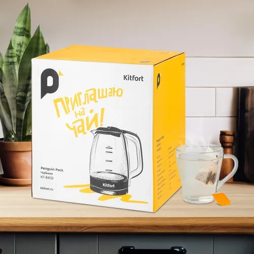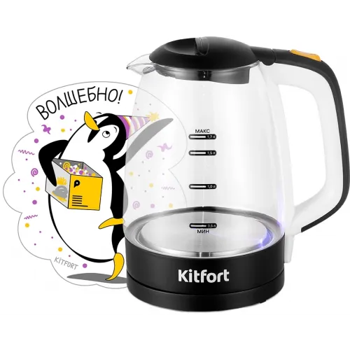 Чайник электрический Kitfort КТ-6632 1.7л. 2200Вт черный/прозрачный корпус: пластик/стекло