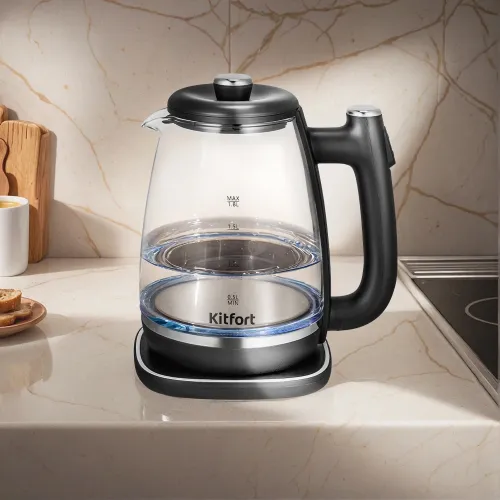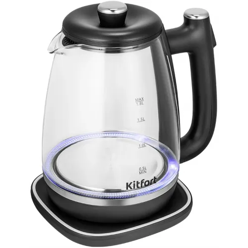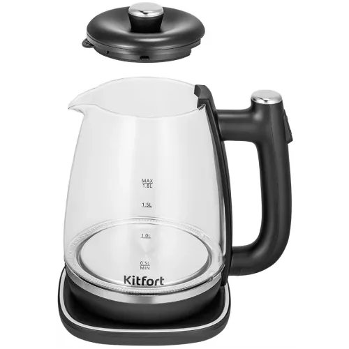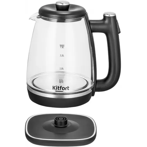 Чайник электрический Kitfort КТ-6728 1.8л. 1650Вт черный/нержавеющая сталь корпус: пластик/стекло