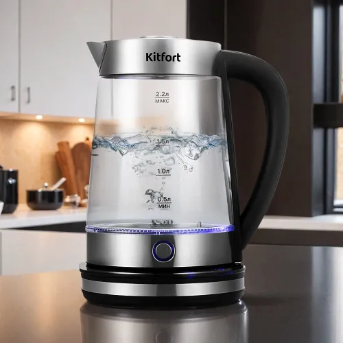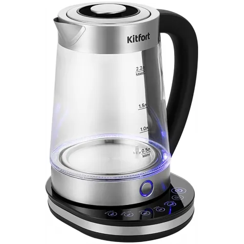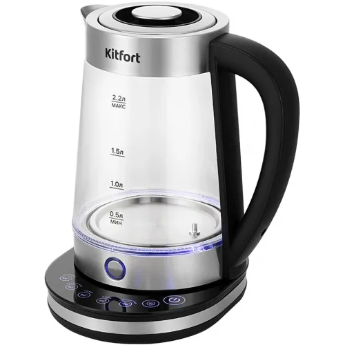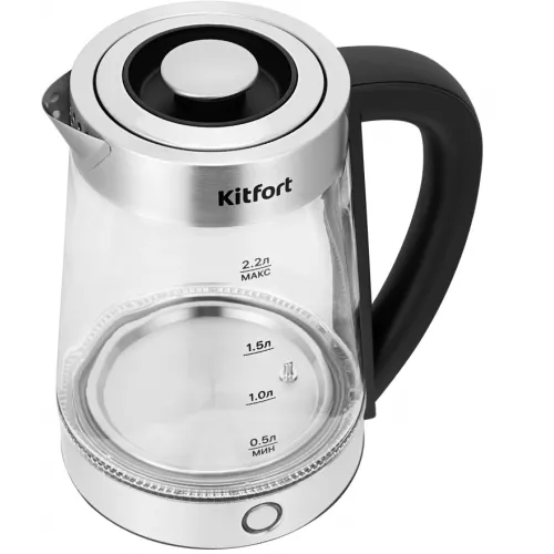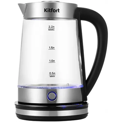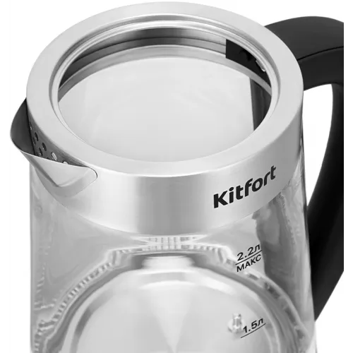 Чайник электрический Kitfort КТ-6764 2.2л. 1800Вт черный/серебристый корпус: стекло/металл/пластик (KT-6764)