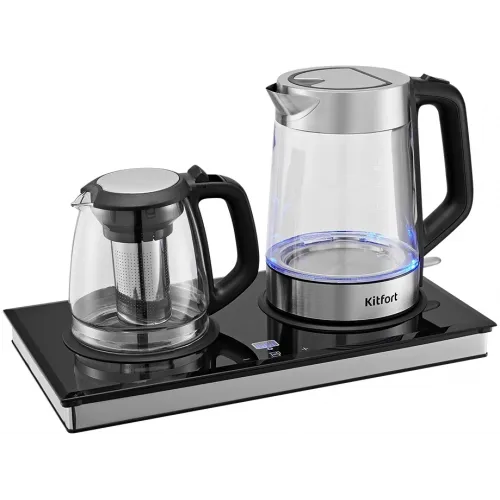 Чайный набор Kitfort КТ-6776 1.8л. 2200Вт черный/нержавеющая сталь корпус: Металл/стекло/пластик