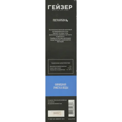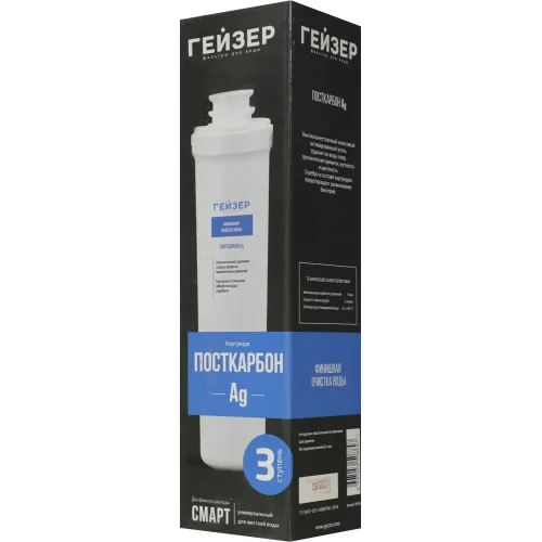 Картридж Гейзер Посткарбон Ag Смарт для проточных фильтров ресурс:10000л (упак.:1шт)