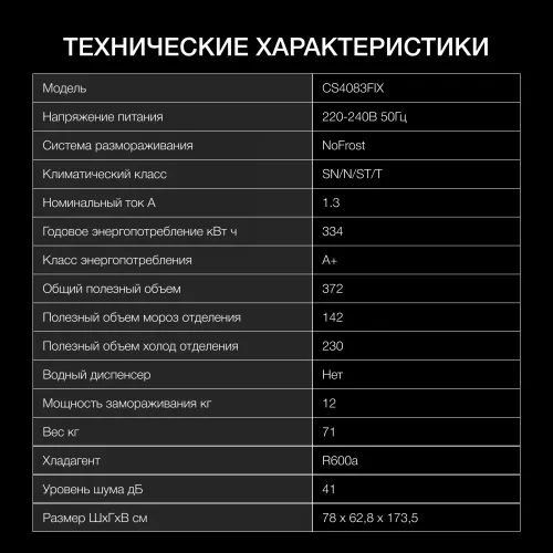 Холодильник Hyundai CS4083FIX 2-хкамерн. нержавеющая сталь инвертер