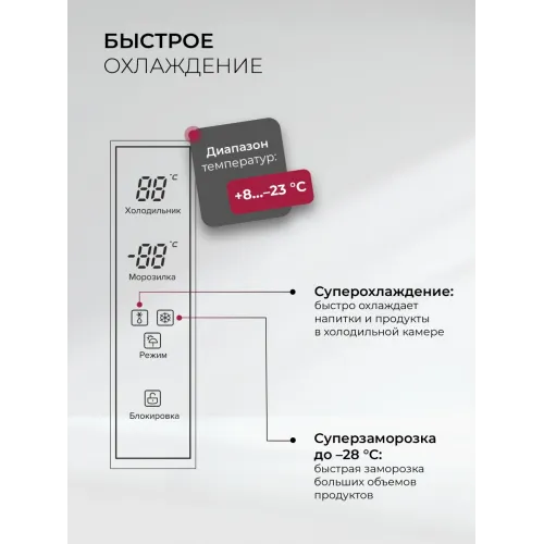 | Функции | защита от детей, режим отпуск, система многопоточного охлаждения, суперзаморозка, суперохлаждение |