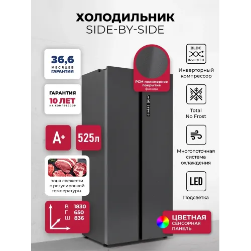 Холодильник Lex LSB525BMID 2-хкамерн. темно-серый инвертер
