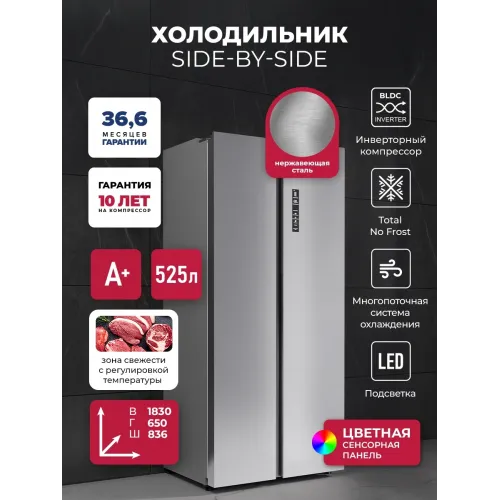 Холодильник Lex LSB525IXID 2-хкамерн. сталь инвертер