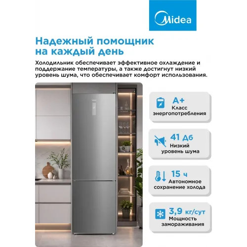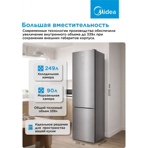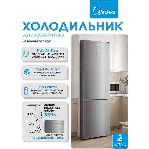Холодильник Midea MDRB489FGE02OE 2-хкамерн. серебристый