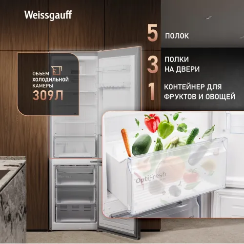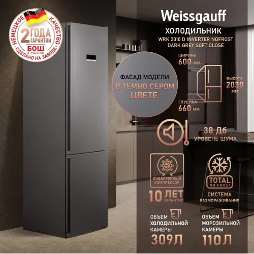 Холодильник Weissgauff WRK 2010 D Inverter NoFrost Dark Grey Soft Close 2-хкамерн. темно-серый инвертер