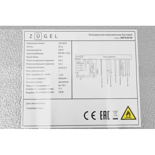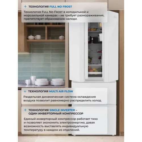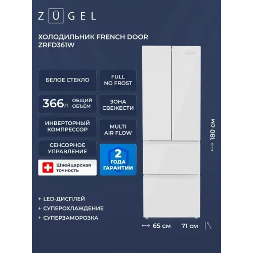 Холодильник Zugel ZRFD361W 3-хкамерн. белый инвертер