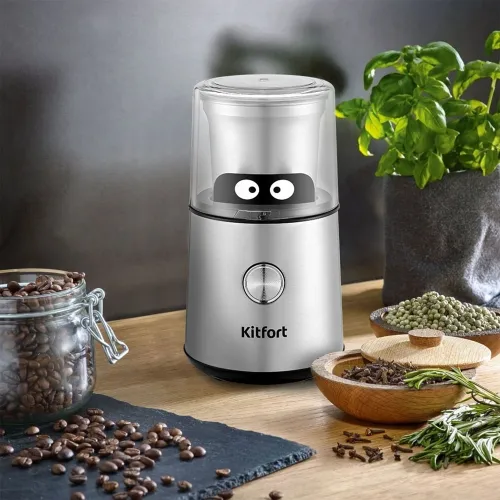 Кофемолка Kitfort КТ-7123 200Вт сист.помол.:ротац.нож вместим.:85гр нержавеющая сталь